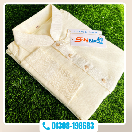 প্লেন ক্রিম কালার অরজিনাল খাদি পাঞ্জাবী ( কোড-০৫)