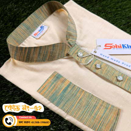 অফ-হোয়াট কনট্রাস্ট ডিজাইন খাদি পাঞ্জাবি ( কোড-৬০)